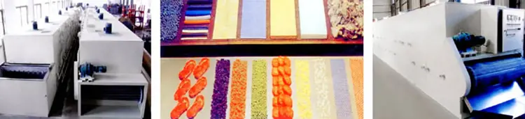 脱水蔬菜、颗粒饲料、味精、椰蓉、有机塑料、合成橡胶、丙烯纤维、药品、药材、小木制品、塑料制品、电子元器件老化、固化等。